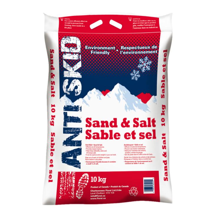 The salt content in this mixture melts snow, while the sand acts as an anti-skid agent. The low percentage of salt is in line with our environmental policy. Composition: 97% sand, 3% salt.