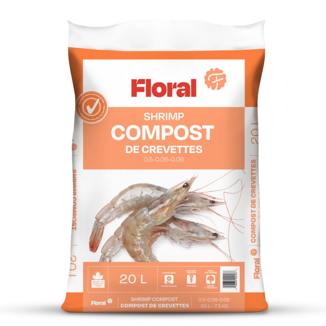Le compost de résidus de crevettes, un produit de compostage de qualité supérieure, est un engrais fertile idéal pour les plantes de grande valeur, les plantes d’appartement et pour celles qui sont cultivées dans des conditions difficiles comme dans les contenants et dans une plate-bande d’aménagement paysager au sol pauvre. C’est aussi un compost structurant pour les sols glaiseux et sablonneux qui permet même d’enrichir la terre servant au terreautage. Très populaire au Québec, le compost de crevettes est riche en matières organiques (humus et fumier), en éléments nutritifs de base (azote, phosphore et potassium) en plus de contenir plusieurs oligo-éléments.